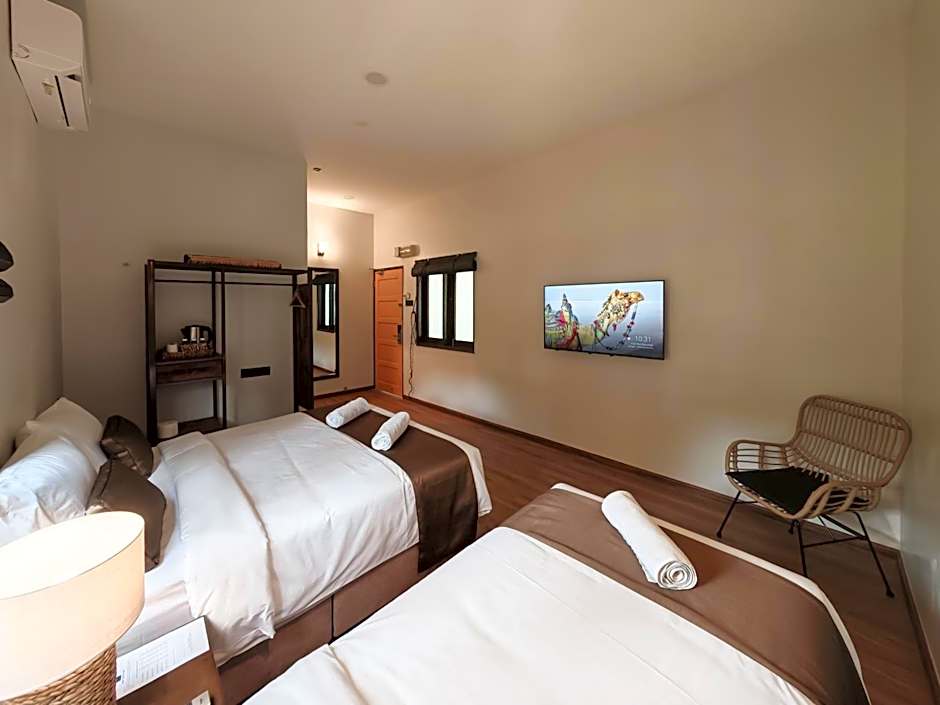 The family room features air conditioning, a tea and coffee maker, a terrace with garden views as well as a private bathroom boasting a walk-in shower. The unit has 3 beds.